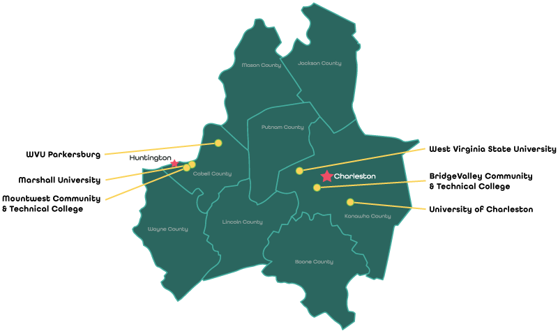 Nearby institutions like BridgeValley, Mountwest, Marshall University, West Virginia State University, and the University of Charleston enhance the district. They support workforce development through programs like Learn & Earn, customized training, and the West Virginia Invest initiative.